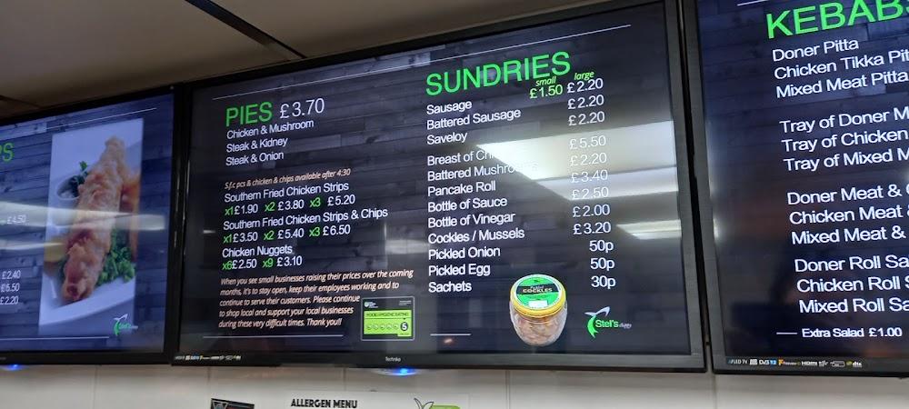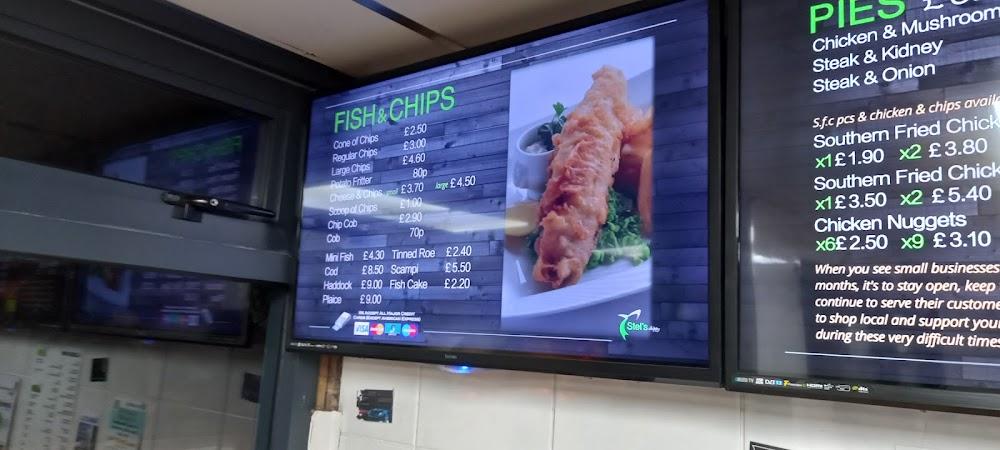 Stel’s Chippy sits in the vibrant heart of Kidderminster, just a stone’s throw away from major attractions like the West Midlands Safari Park. This location draws in tourists and locals, making it a bustling hub for great food. With ample street parking available for free, it's easy to pop in for a meal. The ambiance is casual, perfect for a quick stop or a relaxed dine-in experience. The staff pride themselves on offering friendly service, ensuring that every visit feels welcoming. Stel’s Chippy also embraces modern conveniences with credit card payments, mobile payments, and the option to make reservations, catering to a diverse clientele. Regulars return not just for the food but for the sense of community that develops over shared meals. On weekends, the local crowd adds to the vibrancy, creating a lively atmosphere perfect for enjoying freshly cooked fare.